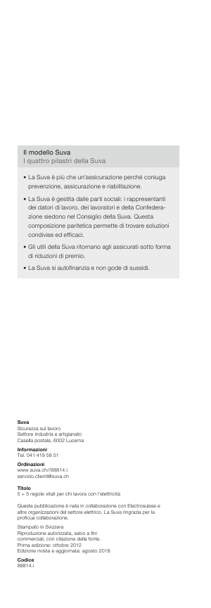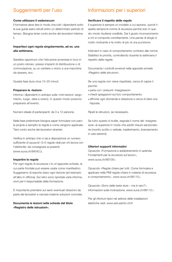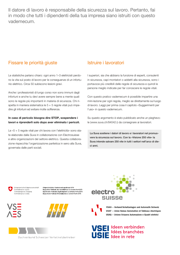 Vademecum SUVA su regole sicure per chi lavora con l'elettricità.