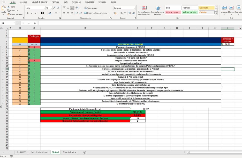 File excel ed iAuditor - Audit Progettazione e sviluppo