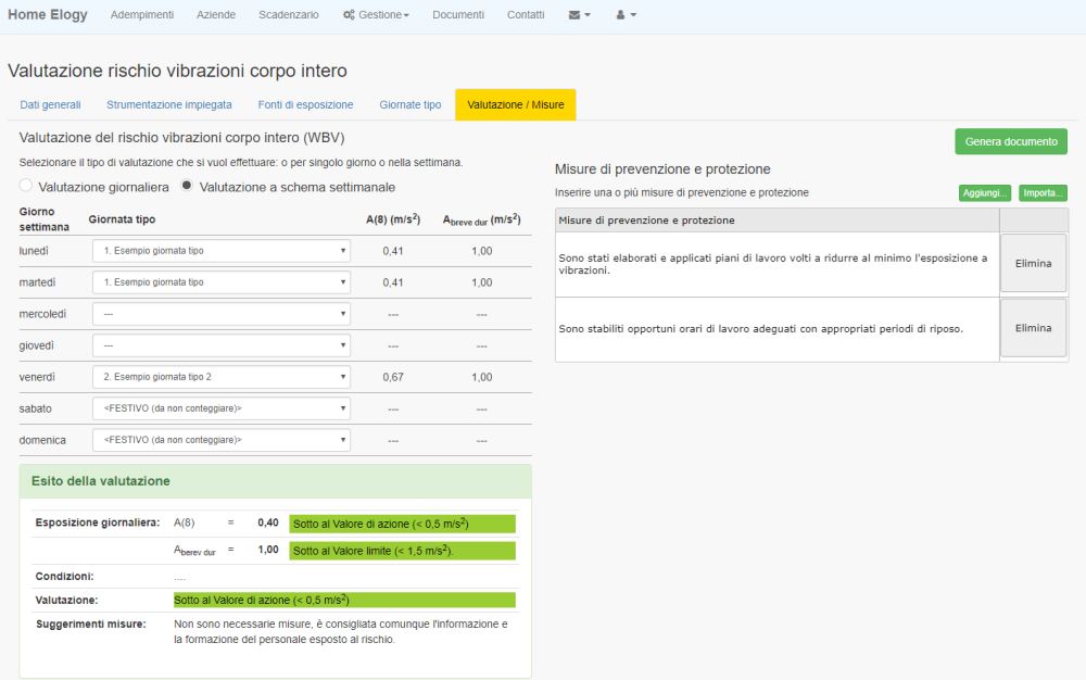 Elogy consente la valutazione rischio vibrazioni sia per giornata tipo che per settimana tipo. E' anche possibile effettuare la valutazione in base a proprie misurazioni in campo con la propria strumentazione.